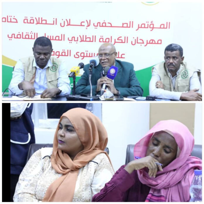 وأوضح الأمين العام في مؤتمر صحفي عقده اليوم ، أن ختام مهرجان الكرامة الطلابي لدعم وإسناد القوات المسلحة يقام برعاية وزير التعليم العالي والبحث العلمي ، البروفيسور أحمد مضوي موسى ، تحت شعار “إعمار الوجدان لبناء السودان” ، والذي يجسد ملحمة الكرامة الطلابية ويهدف إلى تعزيز قيم الوطنية وبث روح الوحدة ونبذ الجهوية والعنصرية وسط الطلاب ، استعداداً لمشاركتهم الفاعلة في بناء الوطن.
