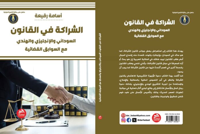 اليوم، وأنا أقدّم الطبعة الجديدة من كتابي “الشراكة في القانون السوداني والإنجليزي والهندي”، من بعد أن فاز مؤخرًا بجائزة التميّز الدولية للمؤلفين 2025، وقد حظي سابقًا بتقديم رئيس القضاء الأسبق وشعبة القانون التجاري بجامعة الخرطوم أشعر بالامتنان لكل من ساهم في دعمه، وللقراء وطلاب القانون والمشتغلين فيه من الزملاء الذين يجعلون لكل كلمة قيمة.