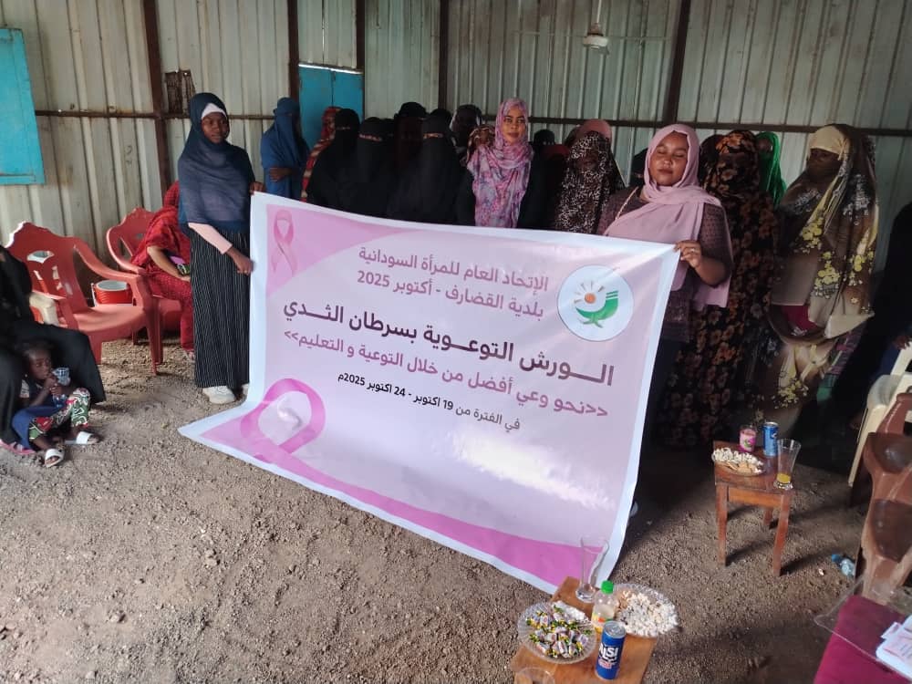 ضمن احتفالات ولاية القضارف ببرنامج أكتوبر الوردي، دشن الاتحاد العام للمرأة السودانية ببلدية القضارف حملة توعوية كبري بأحياء البلدية المختلفة. وبدأت بحي القاش، باستهداف أكثر من 250 سيدة، وتستمر لمدة خمسة أيام متتالية تحت شعار “نجو وعي أفضل من التوعية والتعليم”.