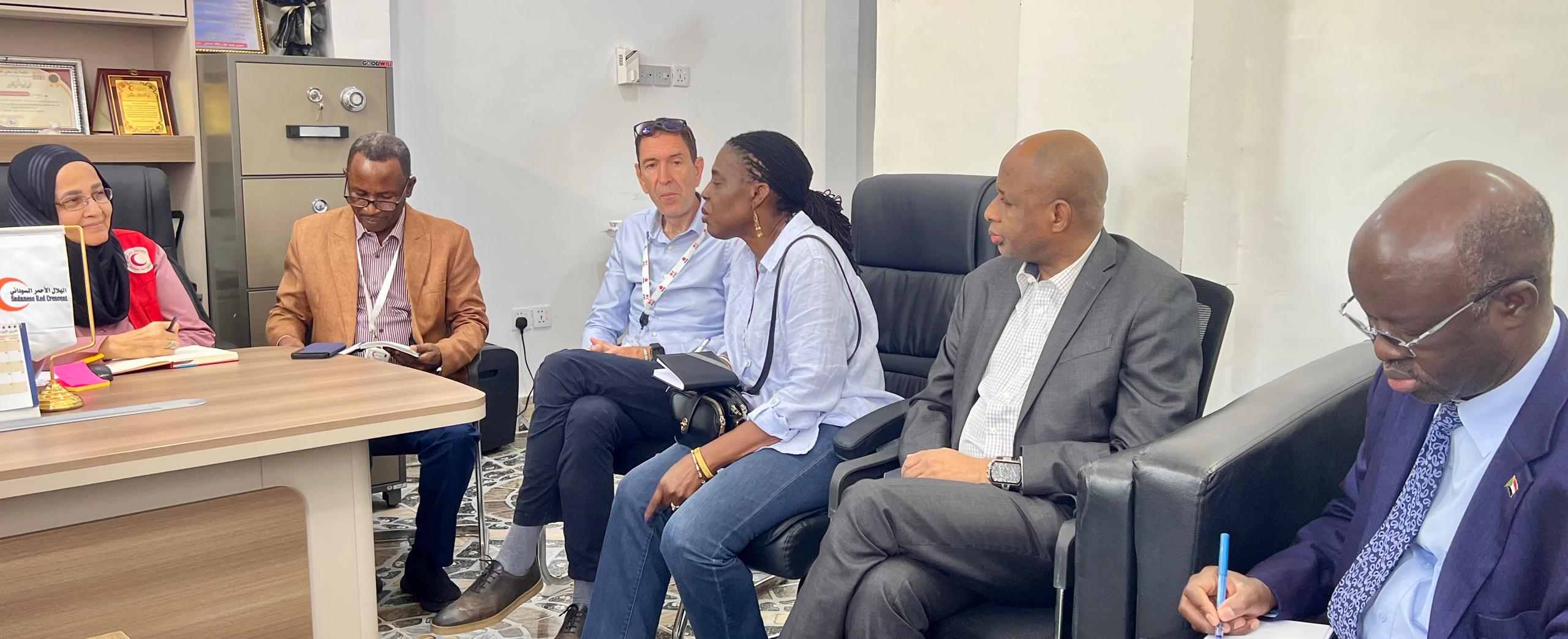 وشكر الوفد جمعية الهلال الأحمر السودانى على إتاحة الفرصة لهذا اللقاء وافادت رئيسة الوفد أن الهدف من الزيارة هو الوقوف على الأوضاع الانسانية على الأرض وتقييم الوضع الإنساني والاحتياجات ومن ثم كيفية تقديم الدعم الفني اللازم .