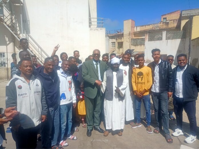 قام سفير جمهورية السودان في أسمرا، سعادة السفير أسامة أحمد عبدالباريء، اليوم ، بزيارة ميدانية لدار الإيواء بمركز المعارض الدولي وعمارة الجالية السودانية في أسمرا، حيث اطمأن على أوضاع المواطنين السودانيين العابرين والمقيمين فيها.