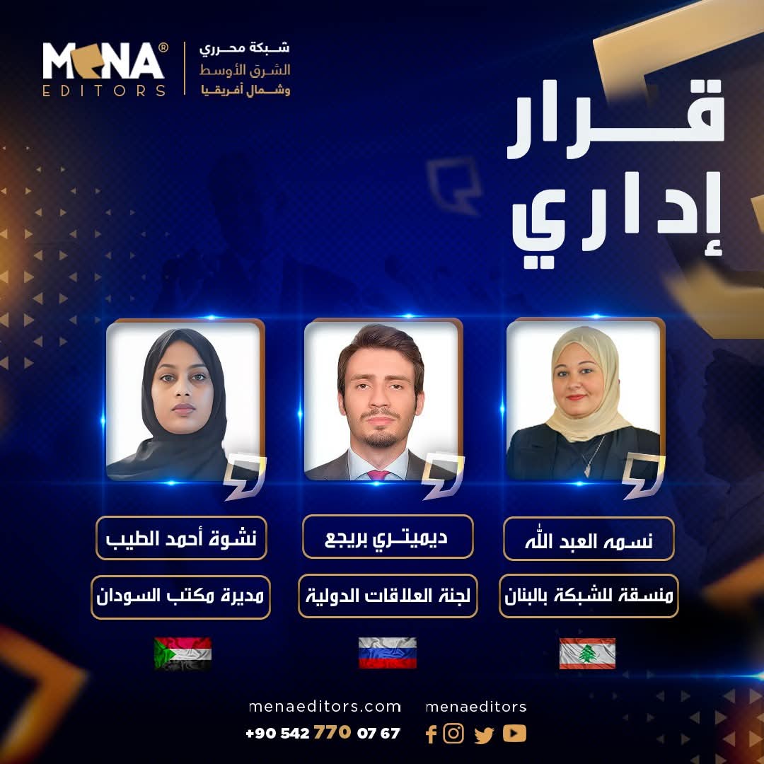 في إطار تعزيز الهيكل التنظيمي وتطوير أدائها المؤسسي، ودعم حضورها الإقليمي والدولي، اعلنت شبكة محرري الشرق الأوسط وشمال إفريقيا عن تعيين الأستاذ ديمتري بريجع