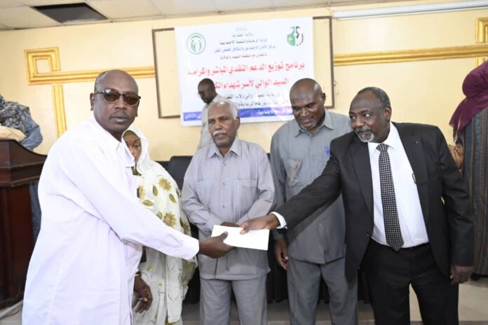 جدد ممثل والى القضارف الاستاذ عبدالعظيم الجاموس لدى مخاطبته ظهر اليوم بقاعة وزارة الرعاية الاجتماعية برنامج نوزيع الدعم النقدى المباشر واكرامية والى الولاية لاسر شهداء معركة الكرامة المنفذ عبر مركز الامان الاجتماعى والتكافل وخفض الفقر بالوزارة ومنظمة الشهيد بحضور عدد من المسؤولين جدد اهتمام الحكومة باسر الشهداء وتوفير الخدمات لهم في المحاور كافة وفاءا وعرفانا للتضحيات التى قدمها الشهداء لحماية السودان والدفاع عن مكتسباته كما اكد الحرص على انشاء المدن السكنية لاسر الشهداء ومدها بالخدمات المتكاملة ووجه منظمة الشهيد بالمتابعة اللصيقة والتواصل مع اسر الشهداء والعمل على تلبية احتياجاتهم…من جانبها اكدت الاستاذه اسيا عبدالرحمن مدير عام وزارة الرعاية الاجتماعية ان الوزارة ستكون السند لاسر الشهداء والعمل على ادخالهم في الحزم والبرامج والمشروعات الاجتماعية المتعلقة بخفض الفقر وزيادة الانتاج والانتاجية والتامين الصحى وكفالة الايتام مبشرة بجملة من المشروعات التى سيتم انفاذها خلال العام الجارى والتى ستنال منها اسر الشهداء نصيبا وافرا …من جهته اوضح الاستاذ محمد خميس مدير منظمة الشهيد ان برنامج نوزيع الدعم النقدى المباشر واكرامية والى الولاية لاسر شهداء معركة الكرامة يهدف الى تطمين اسر الشهداء بانهم تحت رعاية حكومة الولاية واهتمامها بجانب التواصل مع هذه الاسر ورفع روحها المعنوية كاشفا عن الاتجاه لتدريب اسر الشهداء على ادارة المشروعات توطئة لتمليكهم مشروعات صغيرة وتكوين جمعيات انتاجية بالاضافة الى الاستمرار في كفالة الايتام وتزويج الارامل وبرامج السكن والتامين الصحى والتعليم …الجدير بالذكر ان البرنامج تم بغرض ادخال الدفعة الاولى من اسر الشهداء تحت مظلة مركز الامان الاجتماعى والتكافل وخفض الفقر علاوة على توزيع اكرامية والى القضارف للدفعة الخامسة من ذات الاسر بالولاية .