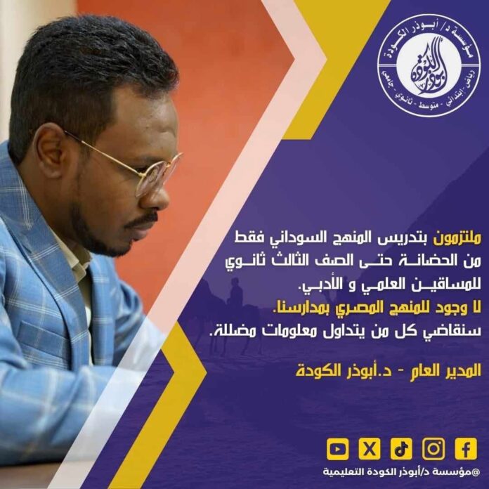 هذا التوجه اثار موجة من الأستهجان وسط السودانيين ، وأعتبروه محاولة لطمس المنهج السوداني ، الأمر الذي دفع وزارة التربية والتعليم في السودان بالتدخل لإيقاف هذا التوجه ، ووجهت السفارة السودانية مدارس أبوذر بعدم تدريس المنهج المصري بإعتباره مخالفا للتصديق الممنوح للمؤسسة .وقد أستجابت الكودة لتلك التوجيهات واوقفت تدريس المنهج المدرسي في مدارسها بالقاهرة ..وأصدرت المؤسسة بيانات صحفية أكدت فيها أنها لا تقوم بتدريس المنهج المصري وليس لها علاقة بأي مراكز تقوم بذلك ولا تتحمل مسؤوليتها .