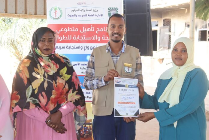 من جانبه أوضح الدكتور أحمد عوض الكريم، مدير الإدارة العامة للتدريب والبحوث، أن هذه الدورة تُعد أول برنامج تدريبي رسمي شامل على مستوى وزارة الصحة، مبيناً أن البرنامج جاء نتاجاً للدروس المستفادة من فترة الحرب، ومؤكداً أن الصحة مسؤولية مجتمعية مشتركة، وأن الوزارة شريك أساسي للمجتمع، ومن واجبها تأهيل وتدريب المتطوعين. وأضاف أن البرنامج شمل كذلك دورات في مجال الرش والحملات الصحية.