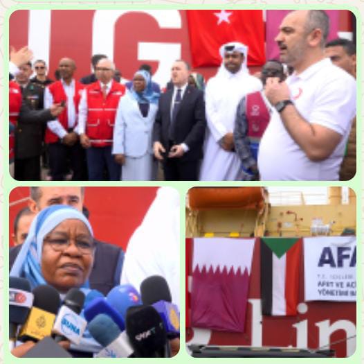 دشنت مفوضية العون الإنساني بميناء بورتسودان الشمالي سفينة المساعدات الإنسانية المشتركة بين تركيا والهلال الأحمر القطري والتى تحتوي على 2,676 طن من المواد الغذائية و مواد الأيوي.