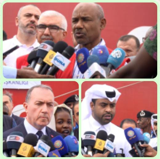 أضاف السفير التركي لدا السودان إن هذه المساعدات التى وصلت إلى السودان توليها الحكومة التركية اهتماما خاصا لأنها بشراكة مع الهلال الأحمر القطري. إن هذه ليست مساعدات من تركيا بل هي رسالة لشعب السوداني من اخوته في دولة تركيا لتقول لهم أنكم في قلوبنا.