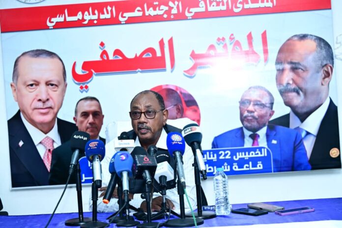 أكد اللواء عمر نمر في المؤتمر الصحفي التنويري بأن العلاقات التركية السودانية علاقات راسخة منذ القدم . جاء ذلك التصريح من خلال المؤتمر الصحفي التنويري لمنظمة رابطة الشعوب اليوم الخميس بقاعة رئاسة شرطة ولاية البحر الأحمر تناول المؤتمر الإعلان عن قيام ندوة بتاريخ 2026/1/24م بصالة الربوة حول العلاقات الإستراتيجية بين البلدين في ظل الوضع الراهن. يتحدث فيها كل من سفير السودان لدا تركيا الدكتور نادر يوسف. ونظيره سفير التركي الفاتح يلدس لحديث عن العلاقات الإستراتيجية والإقتصادية والإنسانية وأوجه التعاون بين البلدين الصديقين.