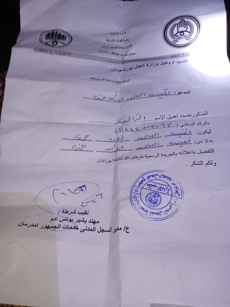 تقدمت بطلب لتعديل الاسم الثالث في أوراقها الثبوتية ليصبح على النحو الآتي: