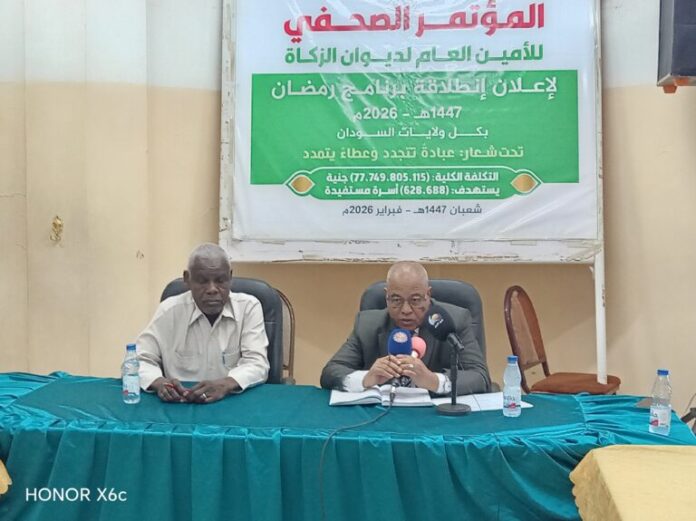 أعلن ديوان الزكاة انطلاقة برنامج شهر رمضان للعام 1447هـ – 2026م في جميع ولايات السودان، تحت شعار «عبادة تتجدد وعطاء يتمدد»، مستهدفًا 628,688 أسرة من الفئات الضعيفة والمتعففة، بكلفة أولية بلغت 77,749,805,115 جنيهًا، وسط توقعات بارتفاع حجم الصرف إلى أكثر من 100 مليار جنيه خلال الشهر الفضيل.