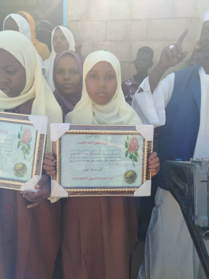 والأستاذ حسين مضوي مدير المرحلة المتوسطة بالمحلية وبتشريف مدير شرطة محلية ام رمته سعادة المقدم شرطة أحمد قسم السيد مرسال وبحضور الاستاذه فاطمة النور الجبيره مديرة مدرسة الصوفي الجديدة صاحبة التفوق والنجاح وبمشاركة شعبية واسعة من أهالي الصوفي.