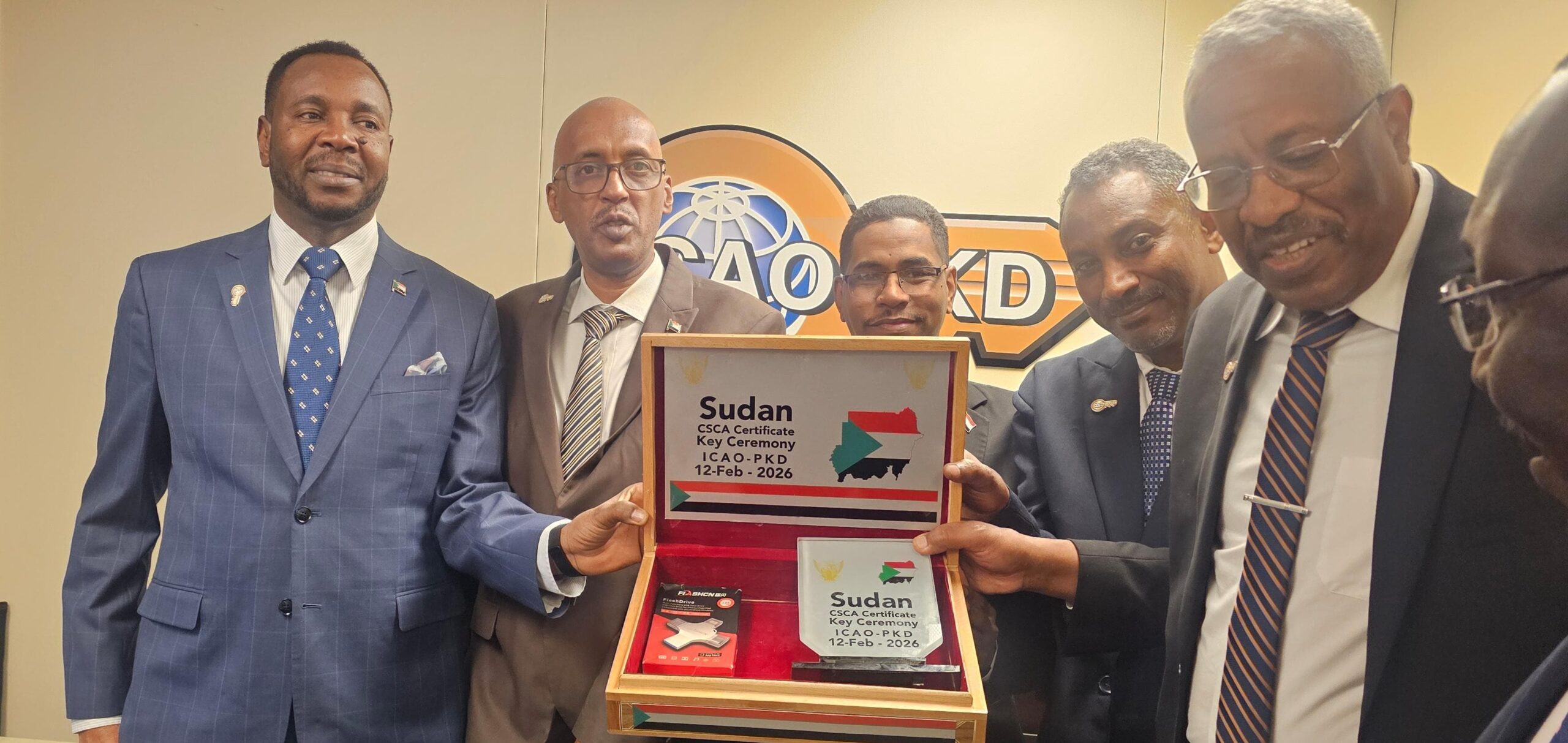 في خطوة تعزز مكانة السودان في منظومة الطيران المدني العالمية، تسلّم وفد السودان بالعاصمة الكندية مونتريال شهادة إدراج المفتاح السوداني (CSCA) ضمن الدليل العالمي للمفاتيح العامة (PKD) التابع لـمنظمة الطيران المدني الدولية، بما يتيح اعتماد التوقيع الإلكتروني على الجوازات السودانية المقروءة آليًا والتحقق من صحتها في مختلف المطارات والمعابر الدولية حول العالم.