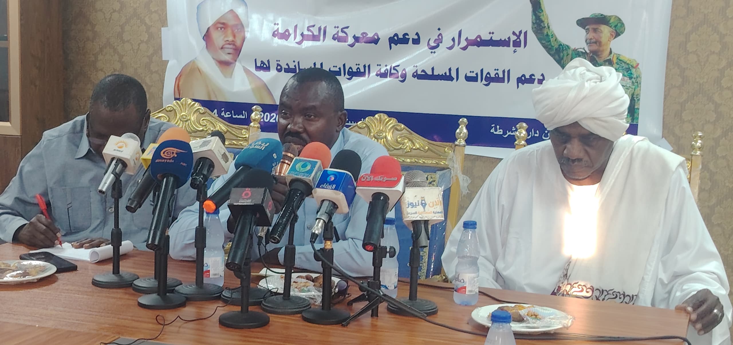 أوضح خلال المؤتمر الصحفي السلطان هاشم عثمان هاشم في حديثه بأن القبيلة قدمت (83) شهيدا منذ اندلع معركة الكرامة من خلال مشاركتهم بكتيبتين في معارك الفاشر.