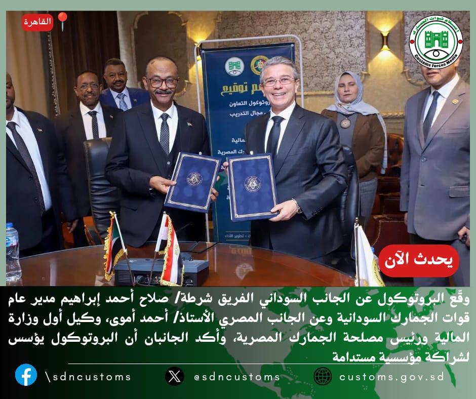 شهدت العاصمة المصرية ( القاهرة) اليوم توقيع بروتوكول تعاون جديد بين مصلحة الجمارك المصرية وقوات الجمارك السودانية، في خطوة تعزز الشراكة المؤسسية بين الجانبين، وتركّز على دعم برامج التدريب وبناء القدرات وتبادل الخبرات الفنية والإدارية في العمل الجمركي، عبر تفعيل الشراكة مع المعهد الجمركي بالإسكندرية كمنصة متخصصة لتبادل الخبرات الفنية والإدارية وتطوير الكوادر.