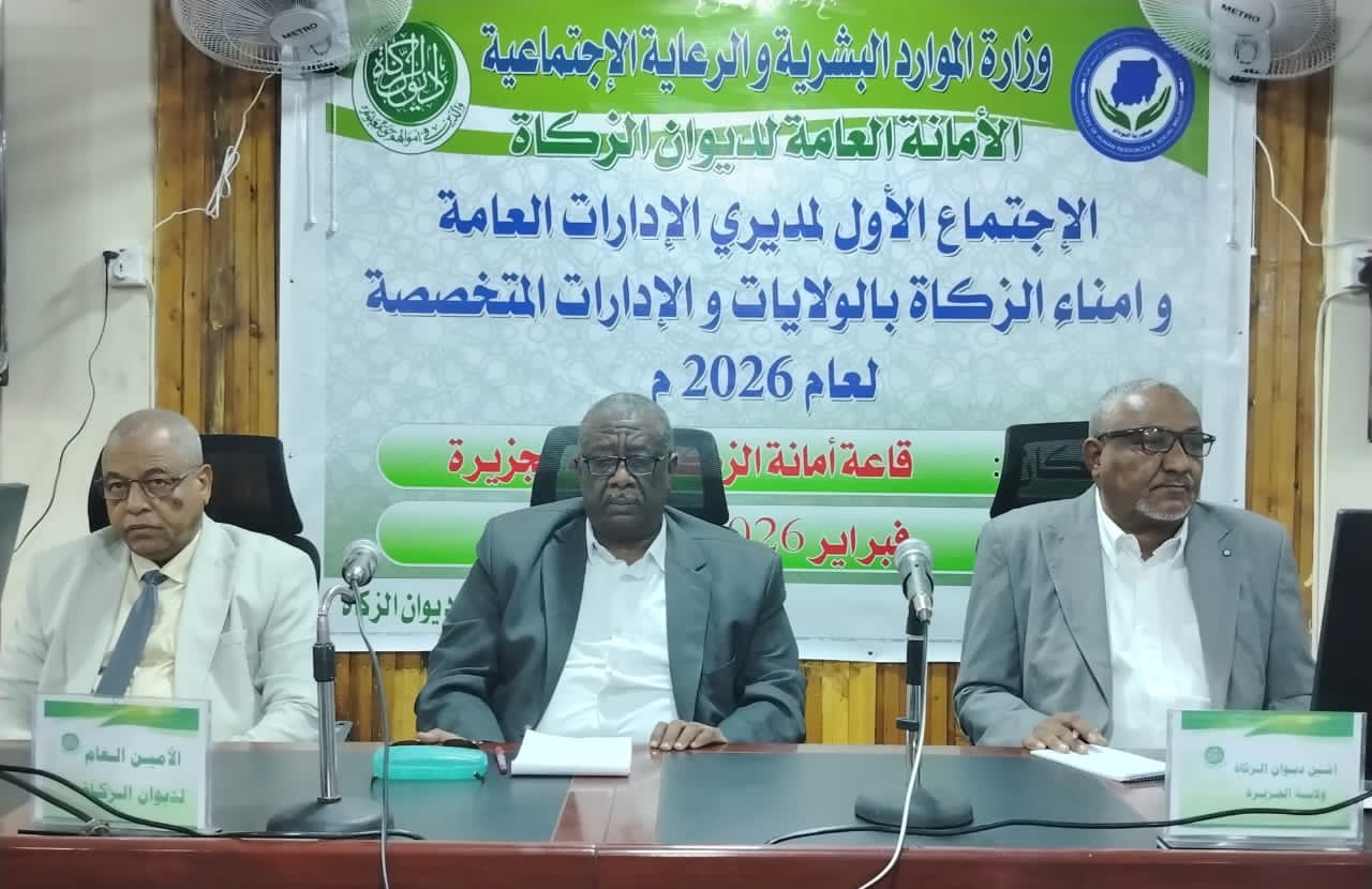عقدت الأمانة العامة لـ ديوان الزكاة الاجتماع الأول لأمناء الزكاة بالولايات والإدارات العامة والمتخصصة للعام 2026م، وذلك بتشريف الأمين العام لحكومة ولاية الجزيرة الأستاذ مرتضى البيلي ممثلاً لوالي الولاية.