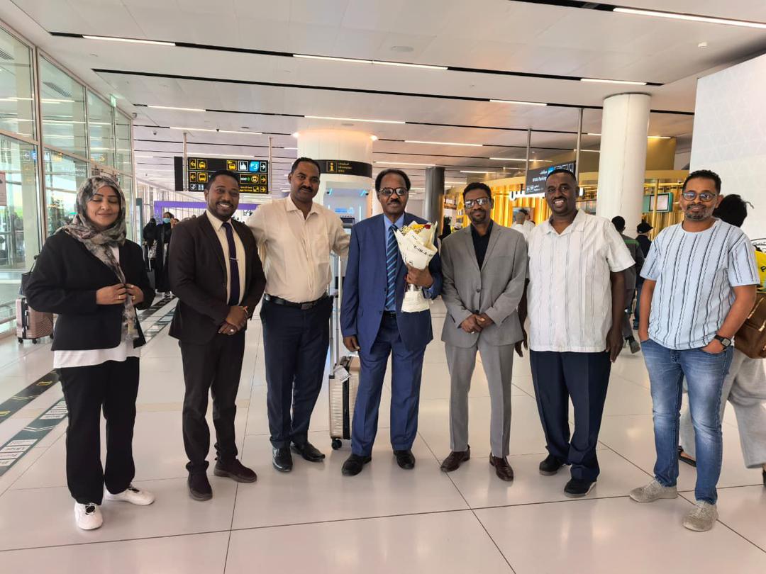 و كان في إستقباله بمطار الملك خالد الدولي وفد رفيع من لجنة اعلام بقيادة رئيس اللجنة التمهيدية لإعلام د. برير عبدالغني، الأستاذ فريد الخليفة نائب الرئيس ، الأستاذ طه القاضي الأمين العام ، الأستاذ طارق عثمان الامين المالي ، المهندس جعفر موسى- امين التدريب والتطوير ، الأستاذة مها جبريل- امين العلاقات الاجتماعية، و الأستاذ محمد بترول عضو اللجنة التمهيدية..